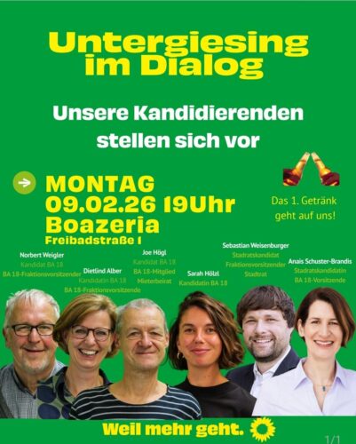 Mit der Veranstaltungsreihe „GRÜN WIRKT: So machen wir München lebenswerter“ wollen die Münchner Grünen konkrete Verbesserungen im Stadtbild sichtbar und erlebbar machen und den direkten Austausch mit den Bürger*innen suchen. So können wir gemeinsam München zur grünsten Stadt Europas machen.