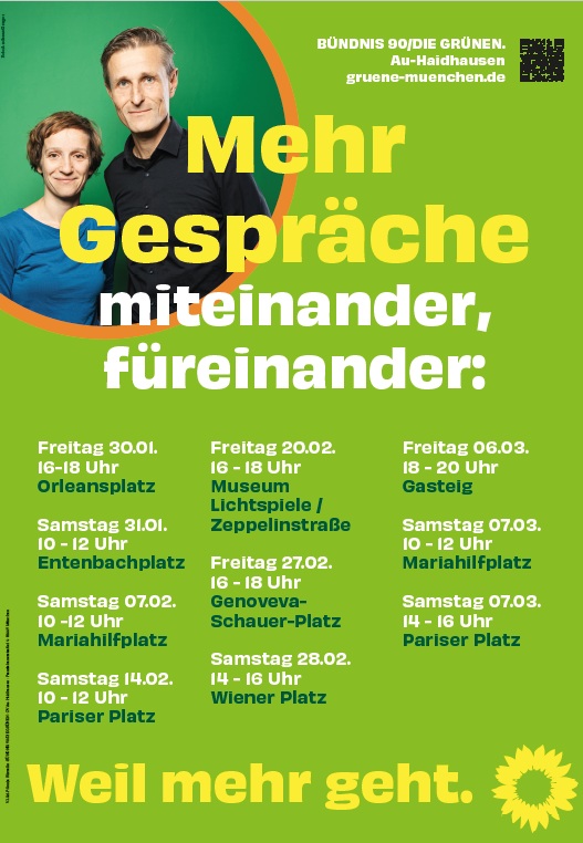 - Mi, 18.03.: Die nächste Vollversammlung des Bezirksausschusses Au-Haidhausen findet am Mittwoch, um 19:00, in der Katholischen Stiftungshochschule, Preysingstr. 95, München, statt.