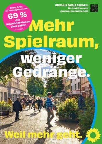 In der Au und in Haidhausen sind wir stolz auf und dankbar für die beständig hohen Wahlergebnisse für uns Grüne in den letzten Jahren. Wir sehen diese als Ansporn, unsere grünen Ziele auf den verschiedenen politischen Ebenen selbstbewusst zu vertreten und gemeinsam mit den Bürger:innen vor Ort weiterzuentwickeln. Ein offener politischer Diskurs ist uns wichtig und wir sind daher jederzeit via Email ansprechbar. Für ein grünes, lebendiges und buntes Au/Haidhausen!