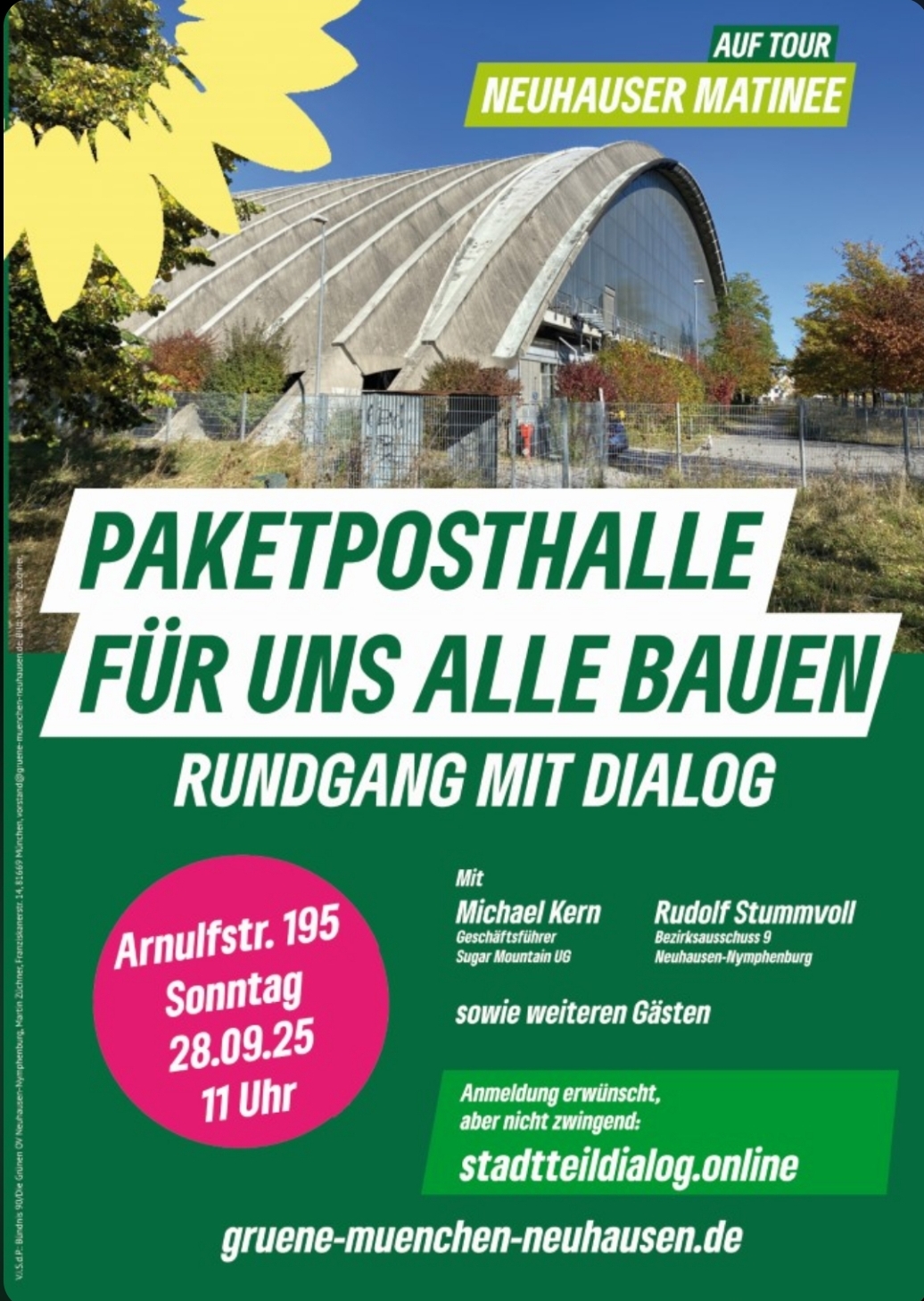 An der Paketposthalle entsteht aktuell etwas, was erahnen lässt, was dort passieren kann, wenn die beabsichtigte Umgestaltung der Halle und des Areals wirklich umgesetzt wird. Aufgrund dem großen Wunsch der Grünen Neuhausen-Nymphenburg, dass hier etwas von und für die Menschen entsteht, wollen wir die Entwicklung kritisch-konstruktiv begleiten.
