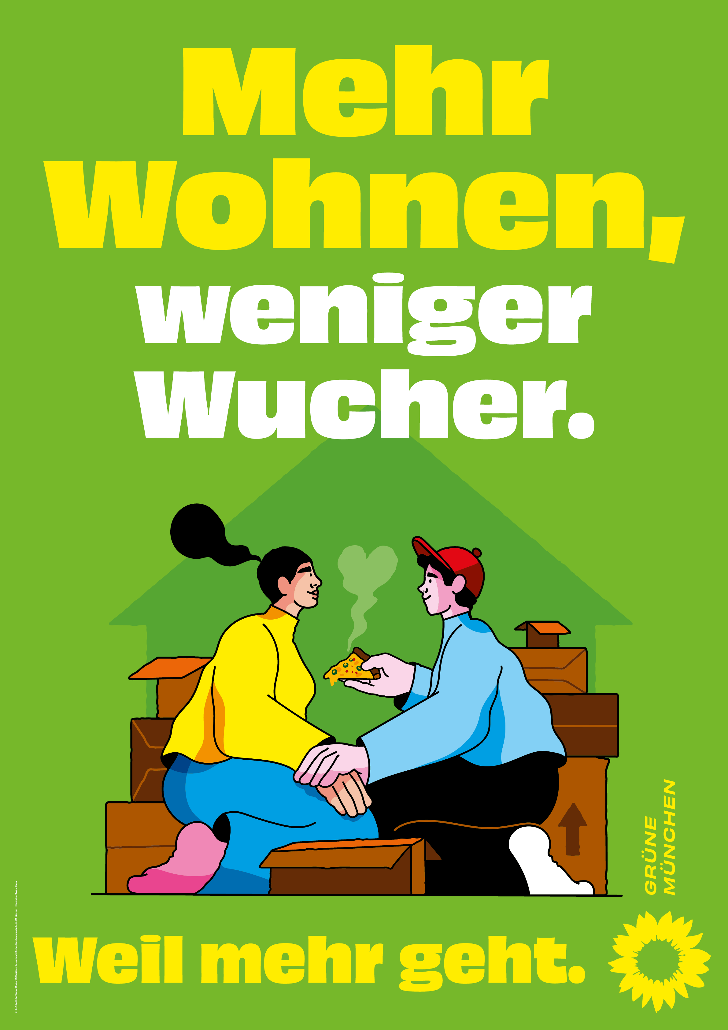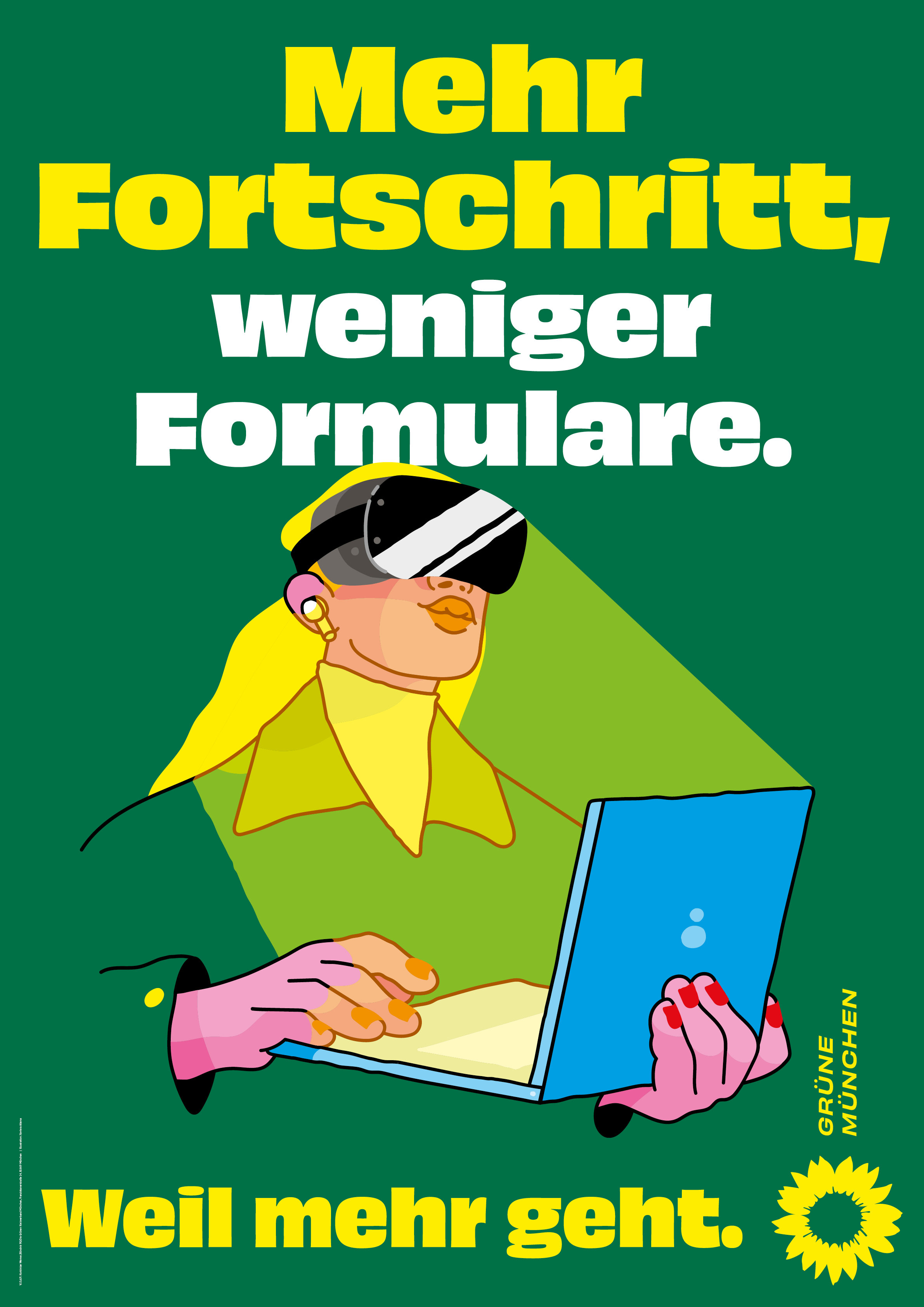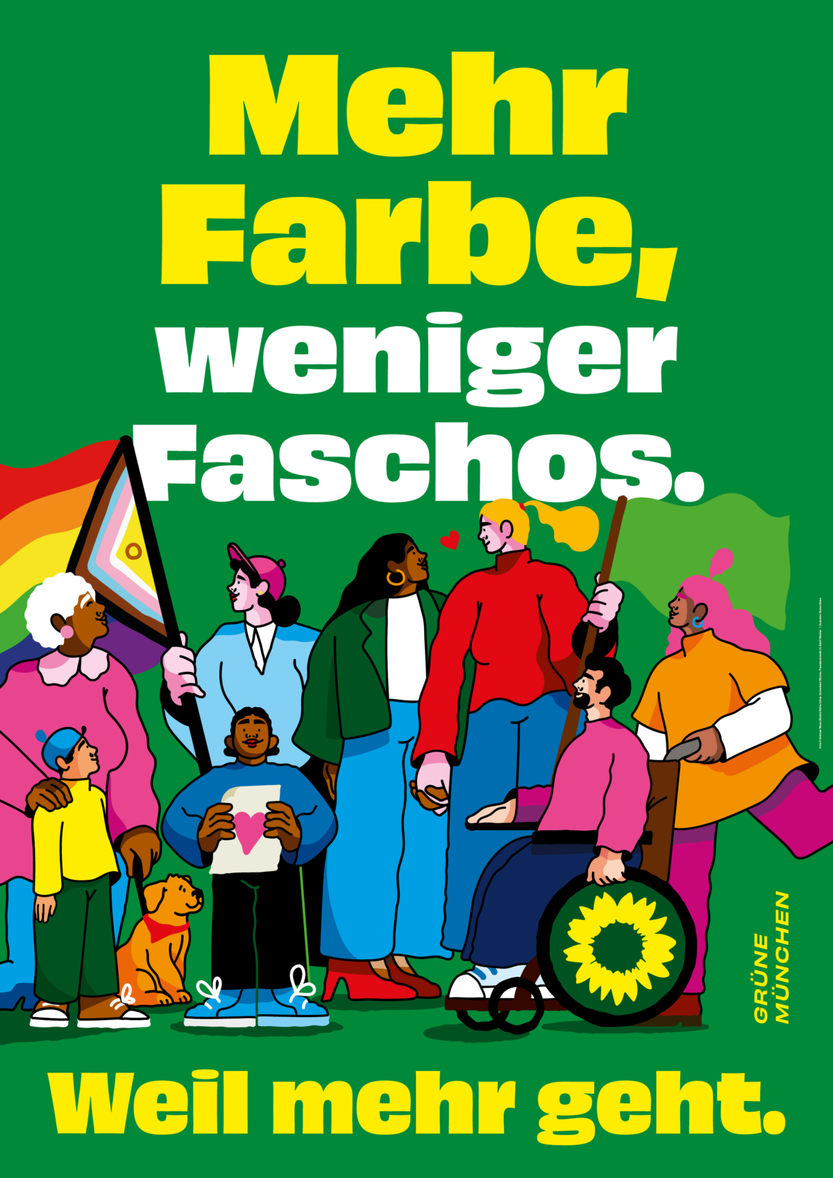 Große und dadurch gut lesbare und prägnante Schrift und frohe Farben sind unsere gestalterische Devise für den Wahlkampfwinter.