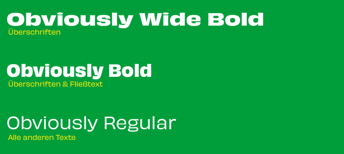 Abweichend vom Grünen CD setzen wir in dieser Kampagne auf die Schrift Obviously.