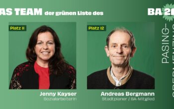 Unsere Kandidatinnen und Kandidaten für den Bezirksausschuss 21 im Stadtteil Pasing-Obermenzing. Heute: Platz 7 und Platz 8 – es geht um Bewohner:innenbeteiligung und Verbesserungsbedarfe