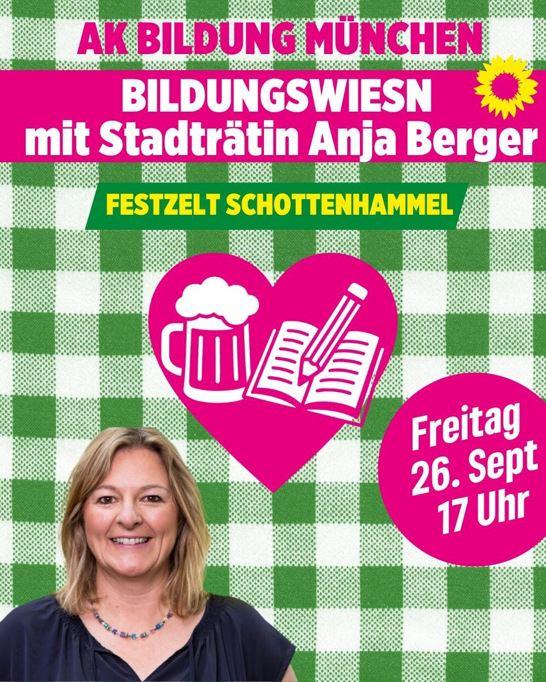 Unsere bildungspolitische Sprecherin Anja Berger (zugleich Wiesn-Stadträtin 😉) lädt ein zur Bildungs-Wiesn. In entspannter Wiesn-Atmosphäre tauschen wir Ideen aus, knüpfen Kontakte und sprechen darüber, wie wir Bildung in München gemeinsam voranbringen.