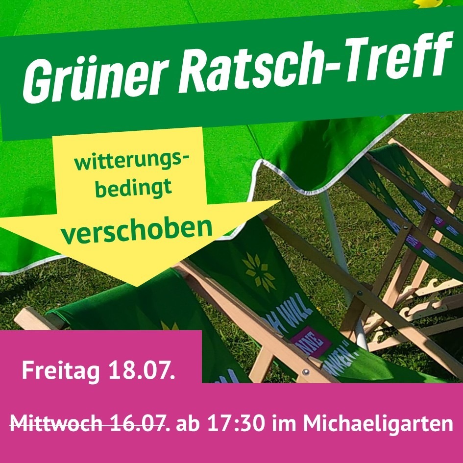 am Mittwoch, 16. Juli findet ab 17:30 Uhr wieder unser grüner Ratsch-Treff im Michaeligarten statt. Wir freuen uns darauf mit euch gemütlich austauschen zu können. Auch auf unsere Neumitglieder freuen wir uns, damit wir uns kennenlernen können und ihr einen Raum für eure Fragen habt. Für alle, die Interesse daran haben bei den Kommunalwahlen 2026 für den BA zu kandidieren oder darüber nachdenken dies zu tun, es werden auch Mitglieder unseres BA da sein, damit ihr auch Ihnen Fragen zur Ihrer Arbeit im BA stellen könnt.