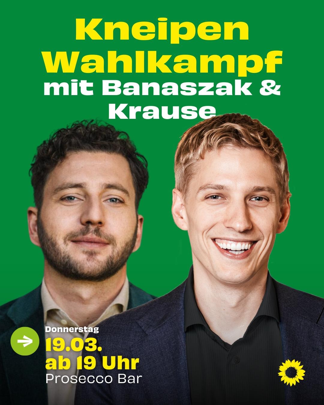 Am Donnerstag, 19. März, kommt deshalb noch einmal Felix Banaszak, Bundesvorsitzender von Bündnis 90/Die Grünen, nach München. Gemeinsam mit Dominik Krause, unserem Kandidaten für das Oberbürgermeisteramt, geht es zum Kneipenwahlkampf durch die Stadt.