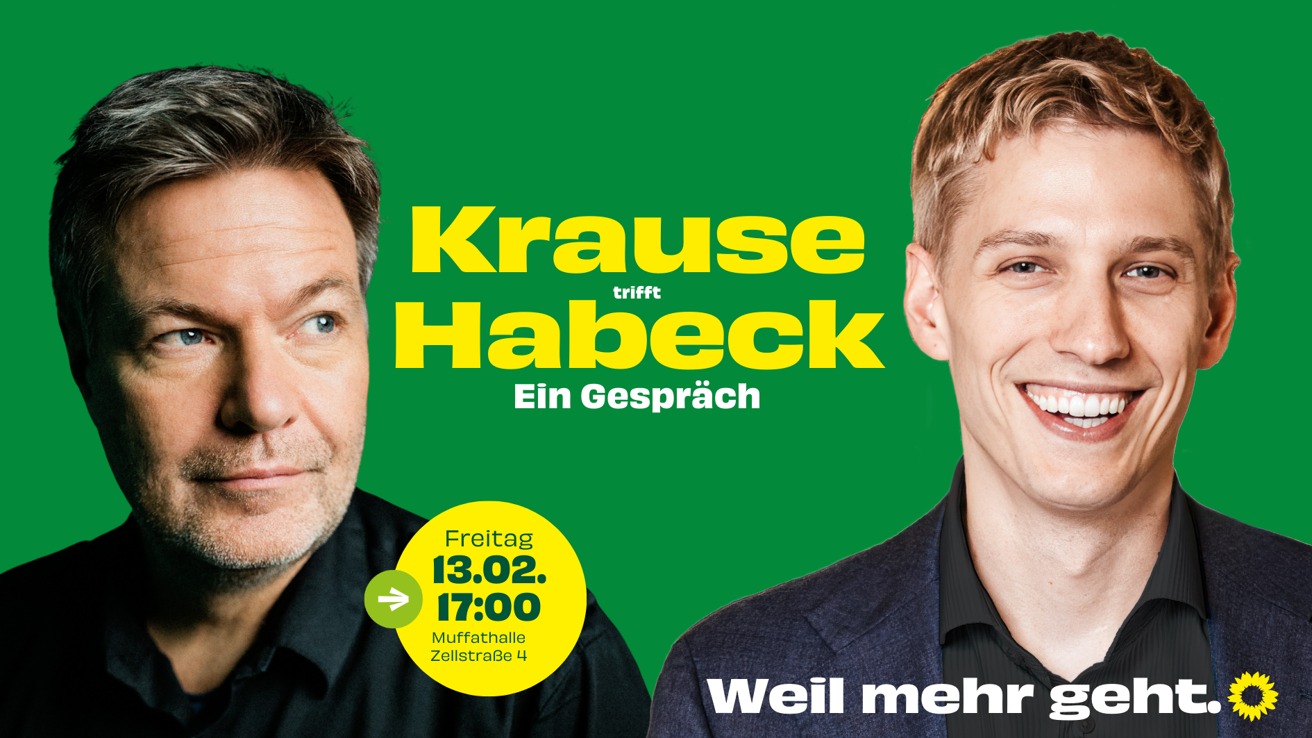 Am Freitag, den 13. Februar, treffen Robert Habeck (ehem. Vizekanzler) und Dominik Krause (unser 2. Bürgermeister und OB-Kandidat für die Kommunalwahl am 8. März) in der Muffathalle aufeinander. In einem gemeinsamen Gespräch geht es um die großen Fragen unserer Zeit – und darum, wie Politik heute Antworten für morgen geben kann.