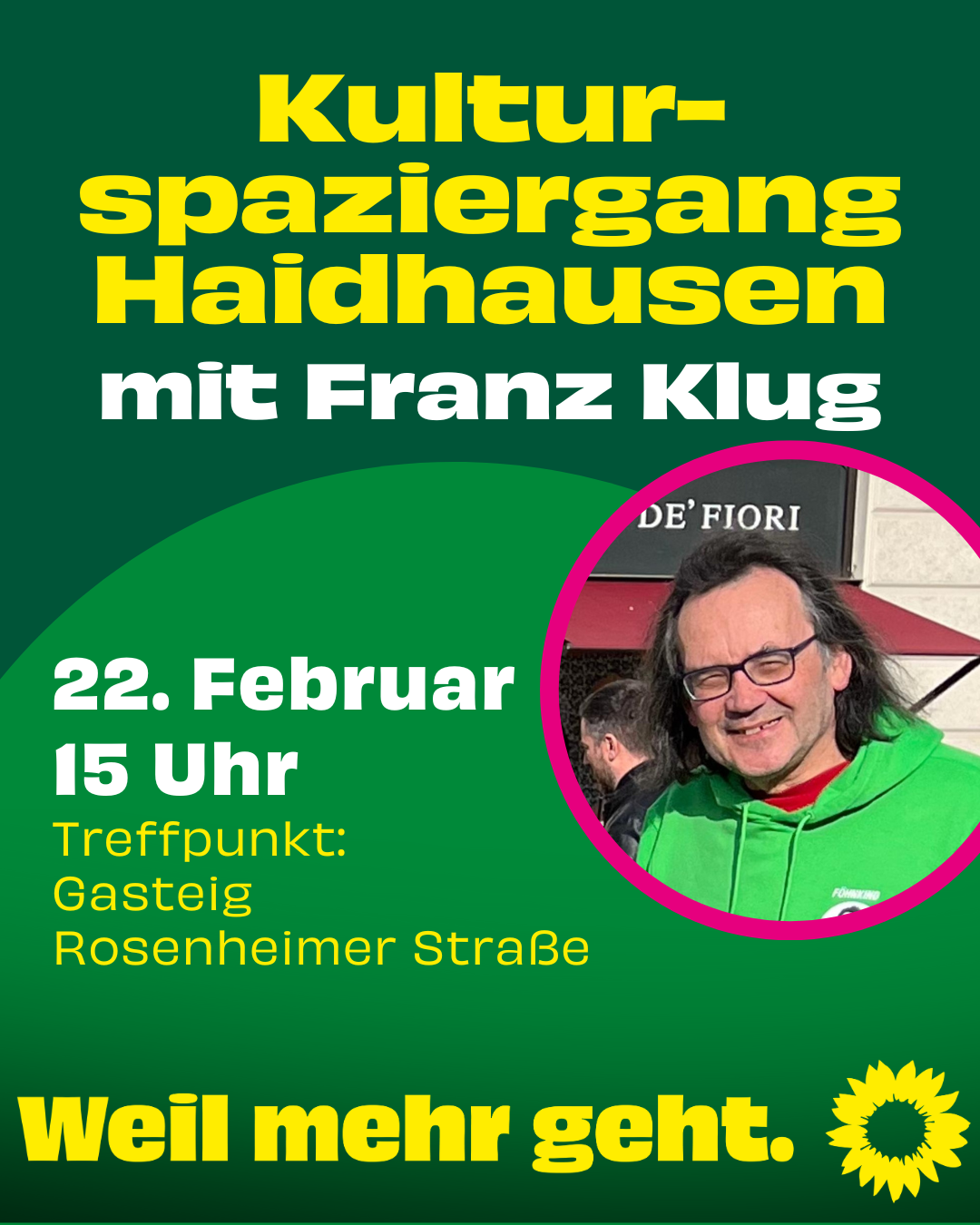 Franz Klug (BA-Fraktionssprecher BÜNDNIS 90/DIE GRÜNEN im BA Au-Haidhausen) nimmt uns mit auf einen Kulturspaziergang durchs Viertel: