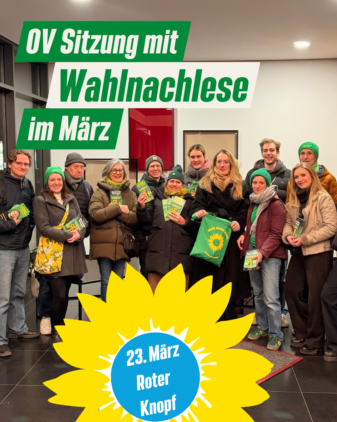 Bei unserer nächsten OV Sitzung lassen wir die Aktionen und Highlights Revue passieren, tauschen Erfahrungen aus und feiern unseren Einsatz in entspannter Runde bei Getränken im Roten Knopf, der eigens für uns seine Türen öffnet!