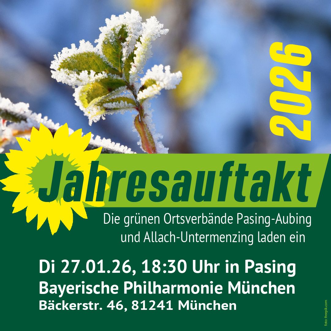 Die grünen Ortsverbände OV Allach-Untermenzing & OV Pasing-Aubing laden herzlich ein zum gemeinsamen Jahresempfang 2026.