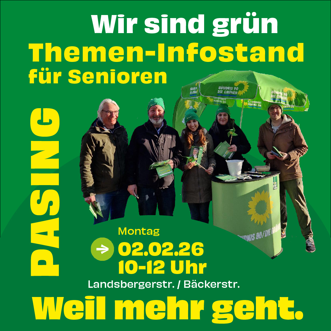 Wir sind am Montag, 02. Februar 2026 von 10 – 12 Uhr an der Ecke Landsbergerstr./ Bäckerstr. sichtbar grün für Sie da.