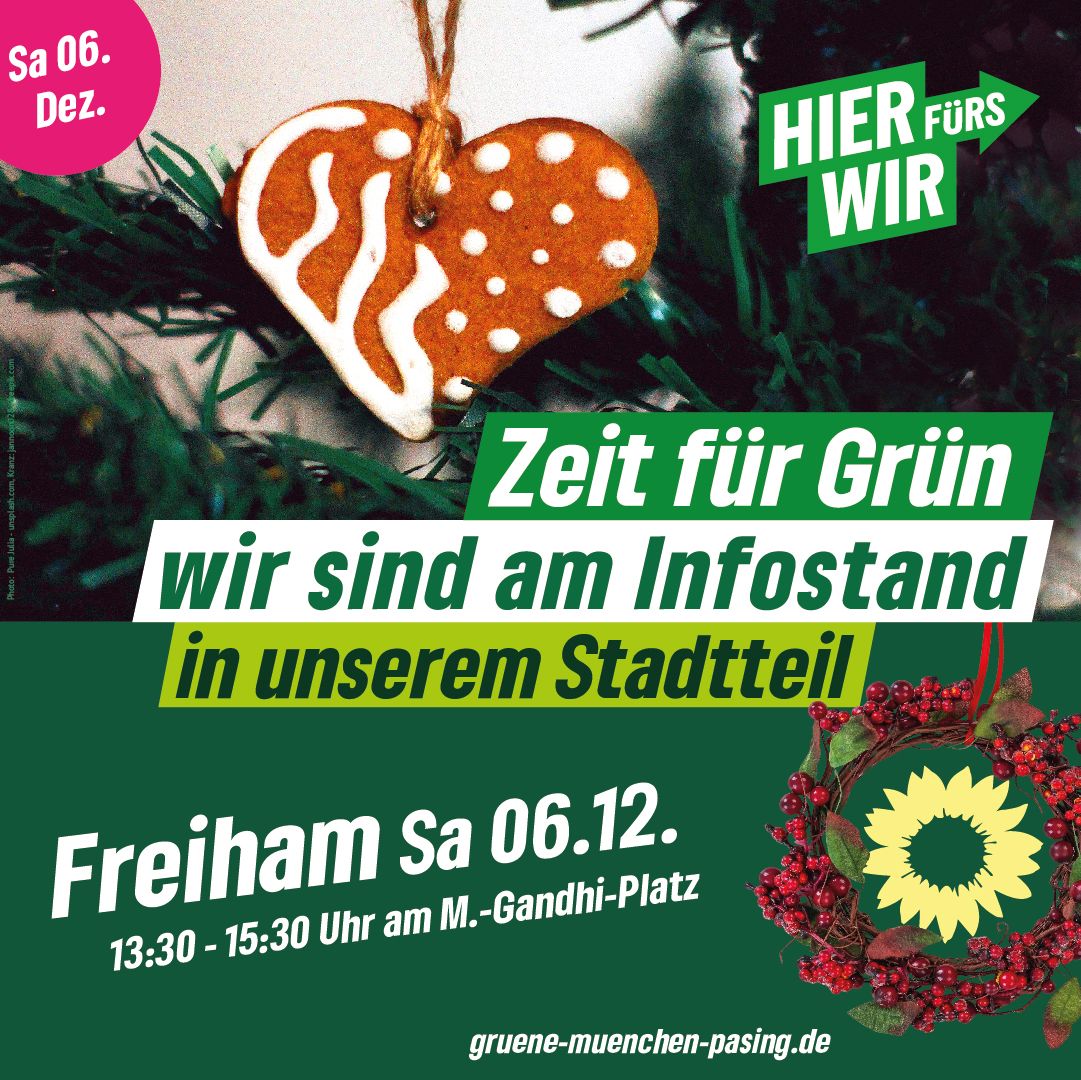 Gern vorbeikommen an unserem Infostand und zur grünen Stadtteil- und BA-arbeit im 22. Münchner Stadtbezirk (Bezirksausschuss 22) mehr erfahren – oder einfach für ein kleines leckeres Geschenk in der Vorweihnachtszeit.
