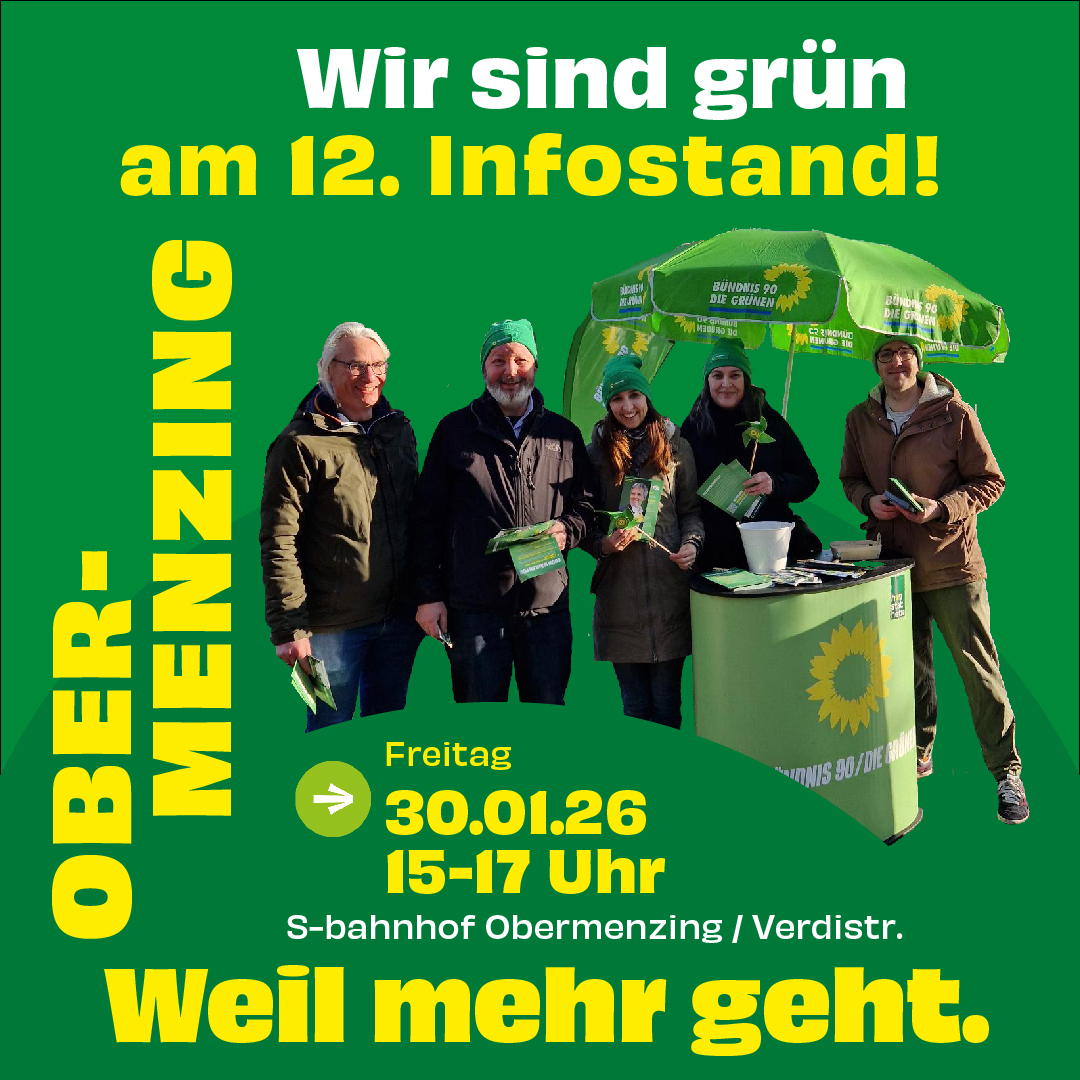 Wir sind am Freitag, 30. Januar 2026 von 15 – 17 Uhr am S-Bahnhof Obermenzing (S2)/ Verdistr. sichtbar grün.