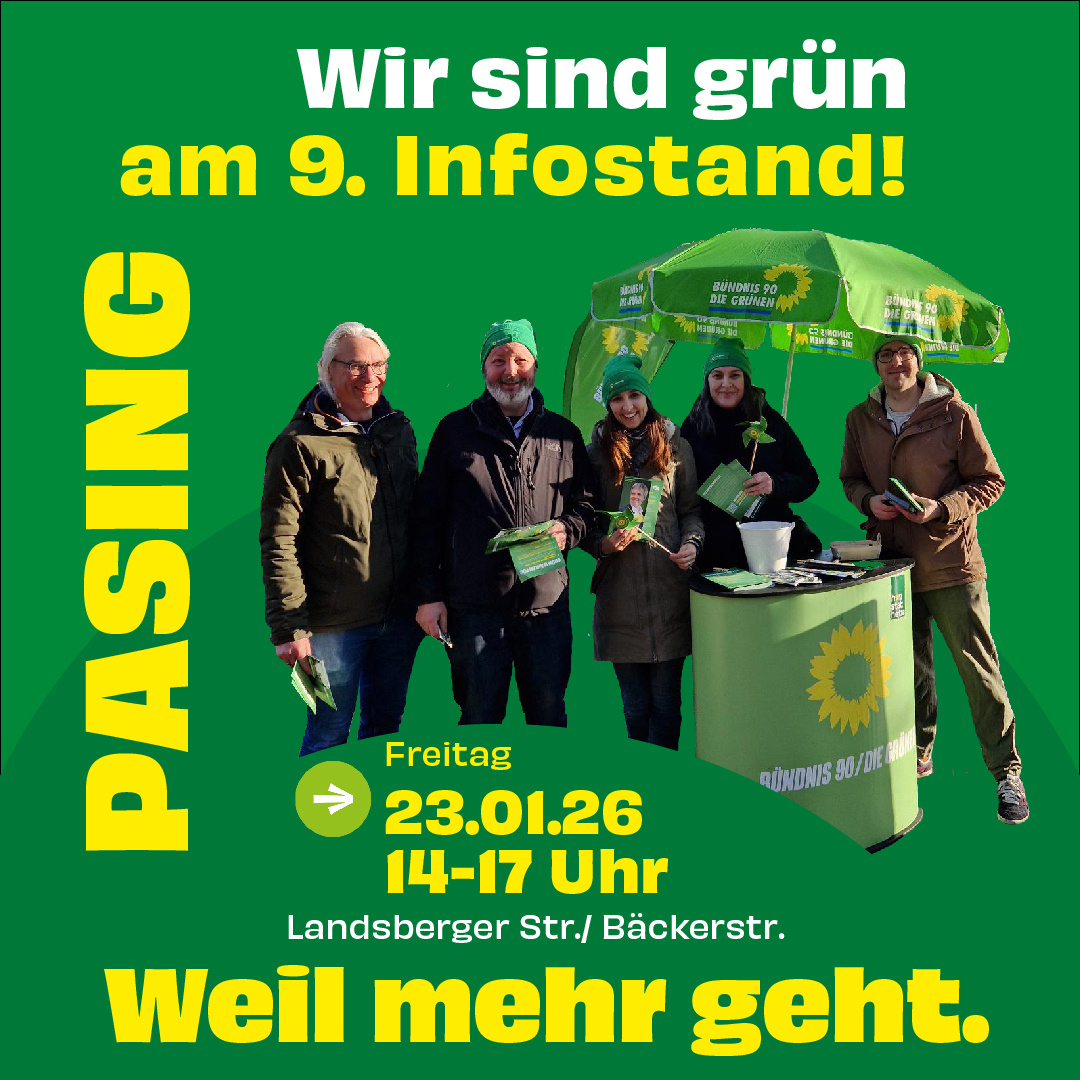 Wir sind am Freitag, 23. Januar 2026 von 14 – 17 Uhr an der Ecke Landsbergerstr./Bäckerstr. (vor Stadtsparkasse) sichtbar grün.
