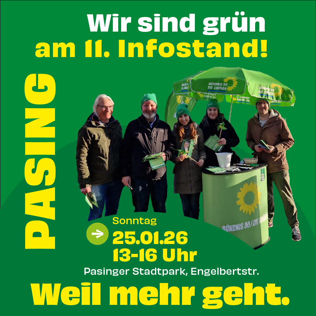 Gern vorbeikommen an unserem Infostand und zur grünen Stadtteil- und BA-arbeit im 21. Münchner Stadtbezirk (Bezirksausschuss 21 für Pasing-Obermenzing) mehr erfahren.